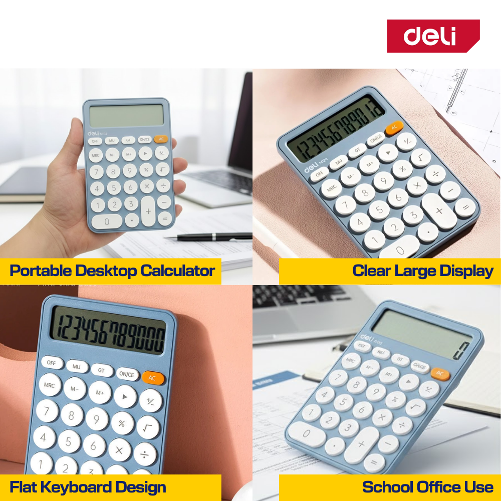 This compact Deli calculator features a crisp 12-digit display, making it perfect for students, office workers, and home use.