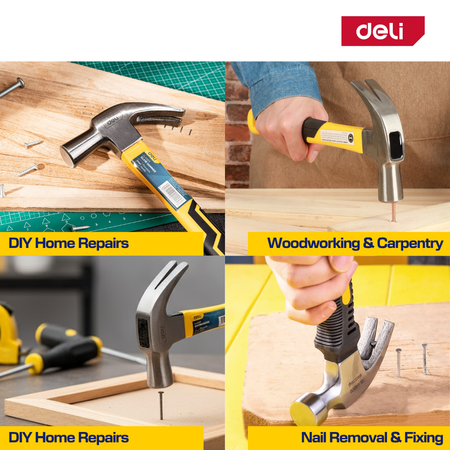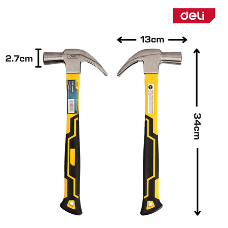 The Deli 27mm Claw Hammer is built for durability and power, making it perfect for driving and removing nails in woodworking, framing, and light construction tasks. Its high-strength fiberglass handle provides superior shock absorption and comfort for prolonged use.