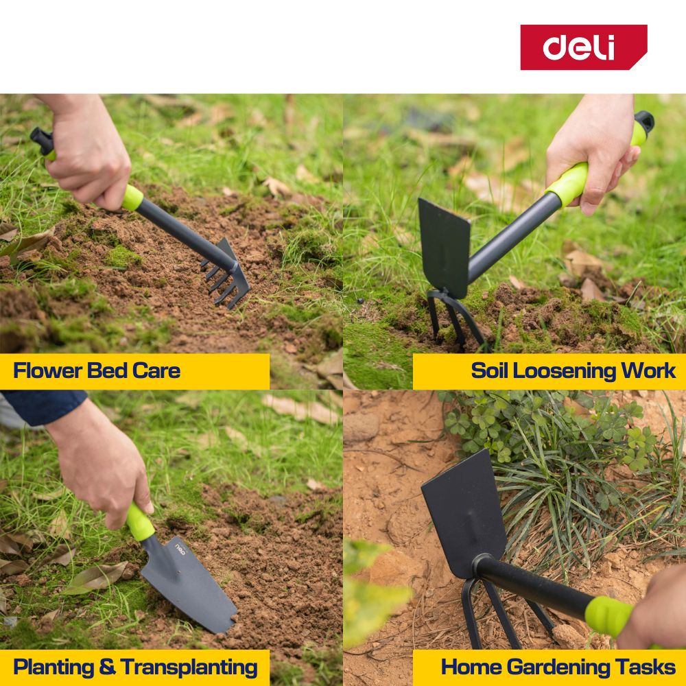 The Deli 3 Pcs Garden Tool Set is a versatile and lightweight kit designed for everyday gardening work.