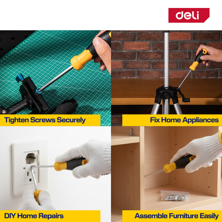 The Deli 9pcs Screwdriver Set is designed for professionals and DIY users who need reliable tools for daily maintenance and repair tasks. Featuring a magnetic tip, bi-material handle, and an elegant transparent storage box, it combines both functionality and convenience in one set.