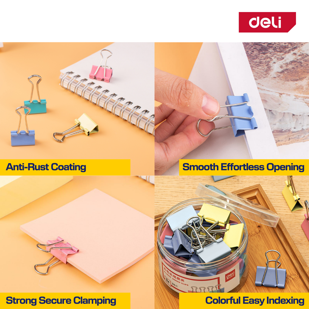 ๐ฟ Deli Binder Clips (Effortless Grip, Colorful, Anti-Rust Coated)