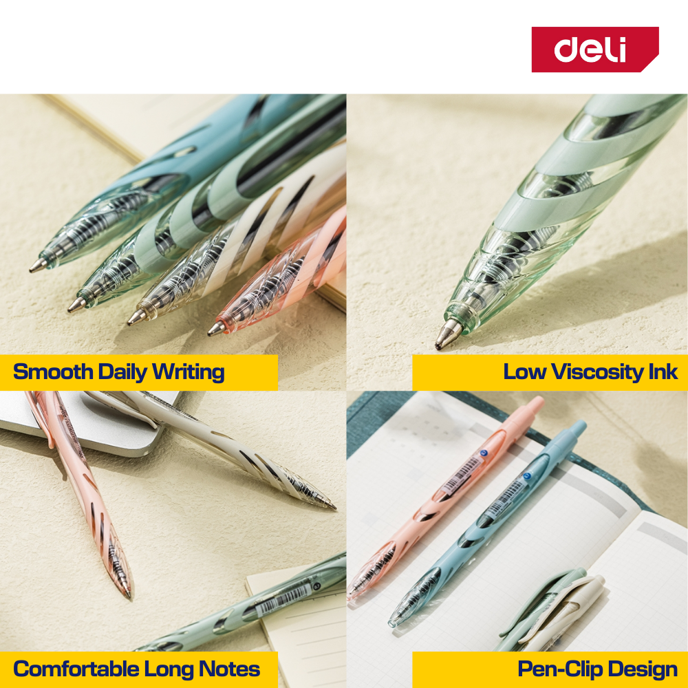 🌿 Deli Ballpoint Pen 0.7mm Bullet Tip (Smooth Writing, Ergonomic Grip)