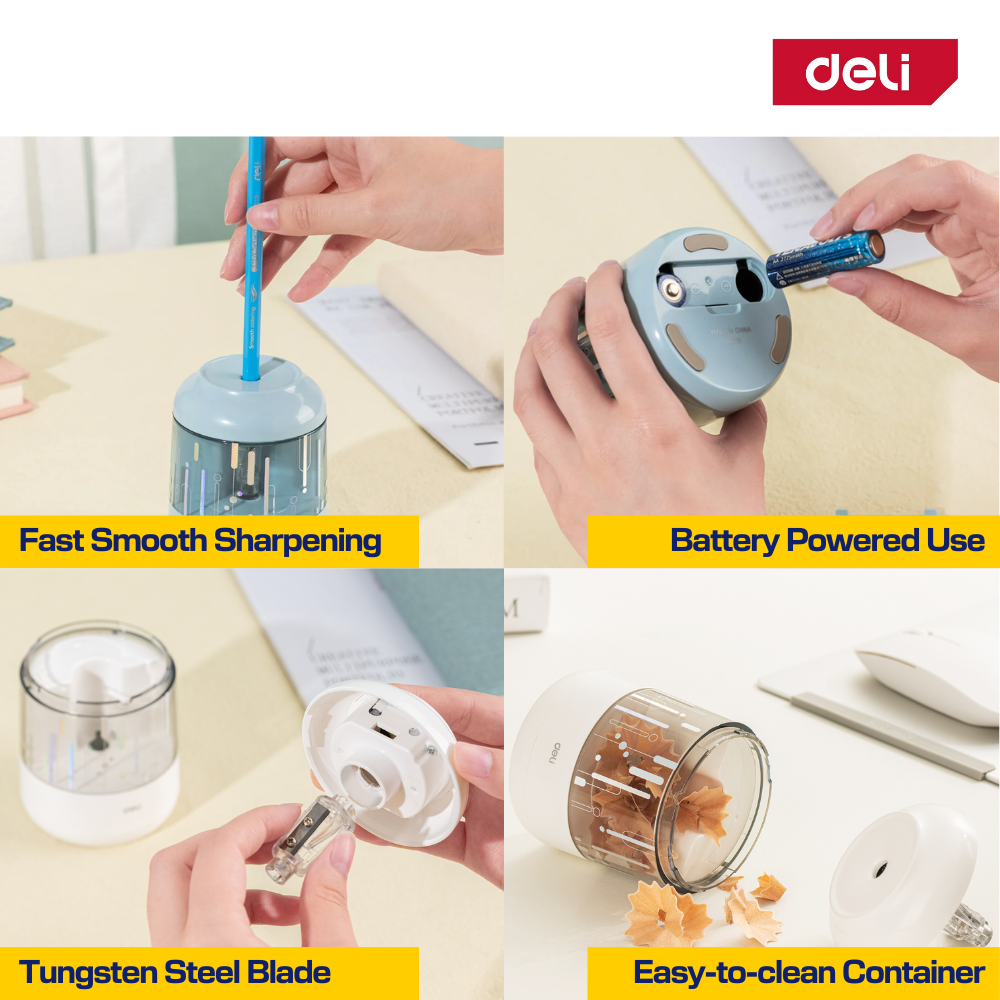 This Deli electric pencil sharpener delivers quick and smooth sharpening performance, working up to 5× faster than manual sharpeners.