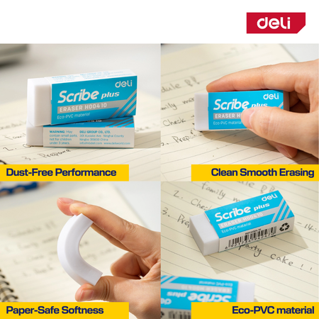 This Deli Eco-PVC eraser provides smooth and clean erasing performance with minimal residue.