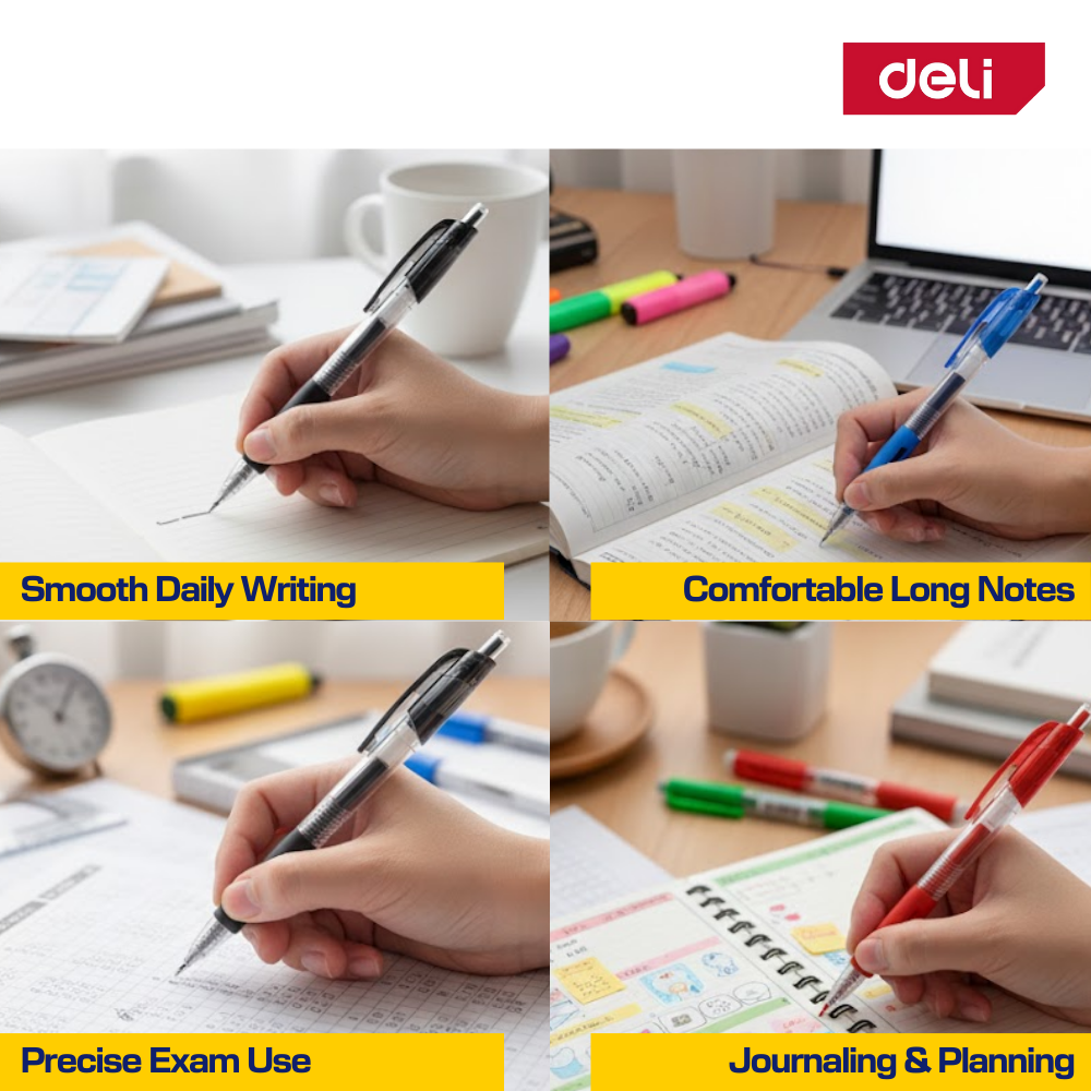 🌿 Deli Gel Pen 0.5mm Bullet Tip (Smooth Ink, Soft Grip)