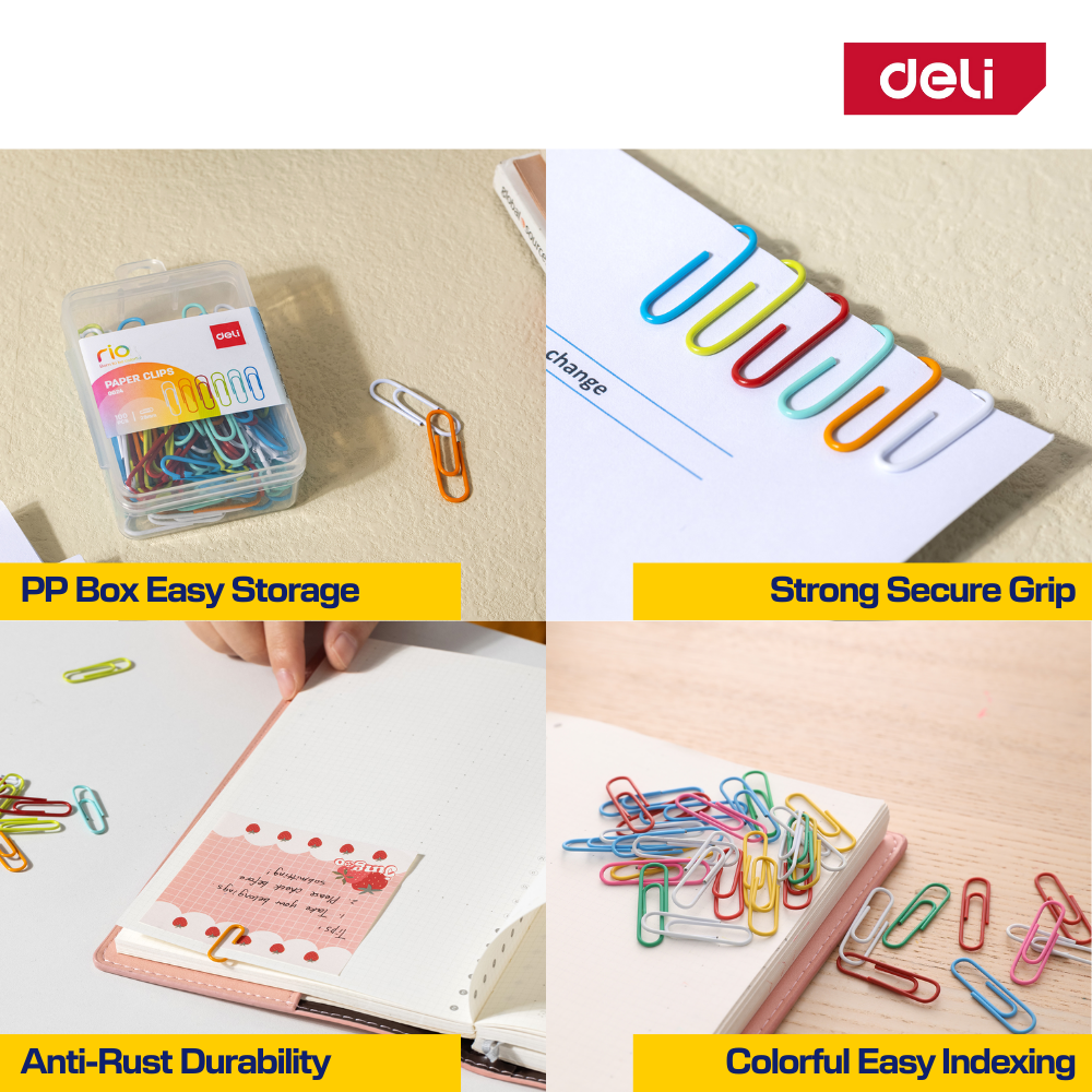 🌿 Deli Paper Clips (Silver & Assorted Colors, Anti-Rust, Strong Grip)