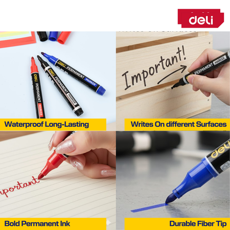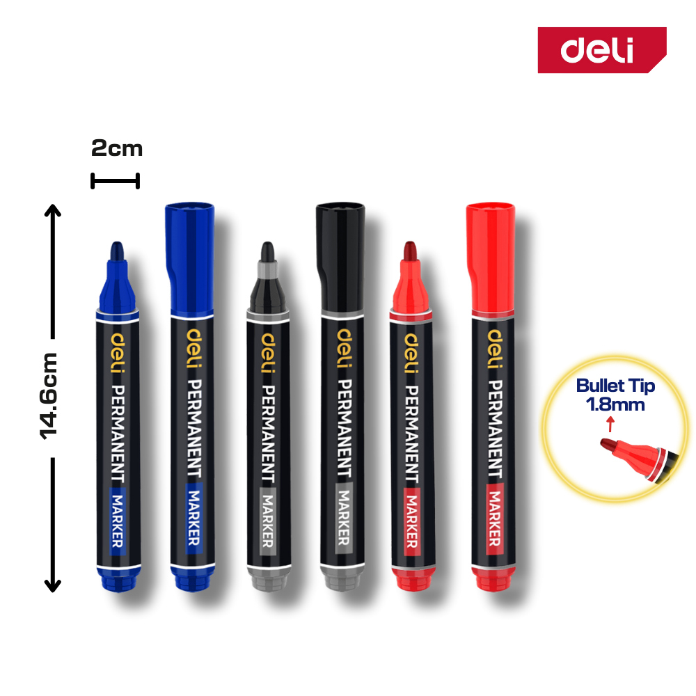 🌿 Deli Permanent Marker 1.8mm (Waterproof, Fade-Resistant, Durable Tip)