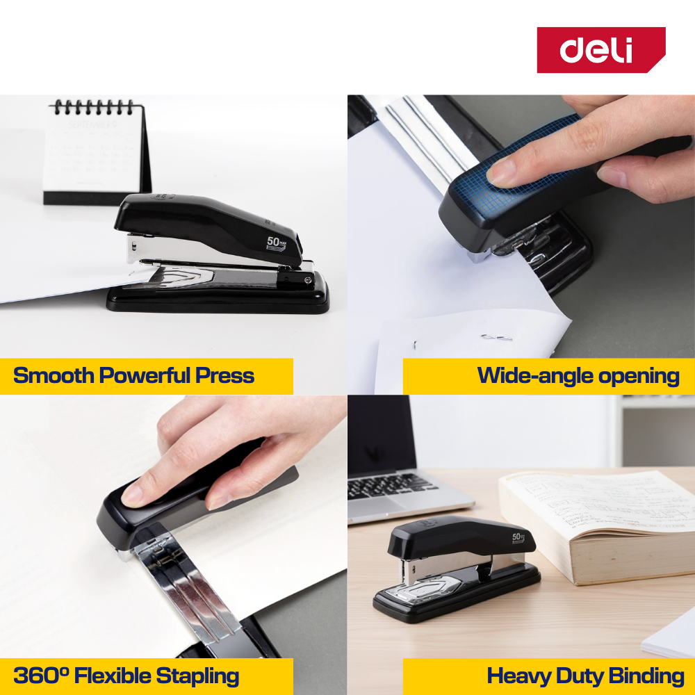 🌿 Deli Rotary Stapler 50-Sheet (360° Head, Heavy Duty)