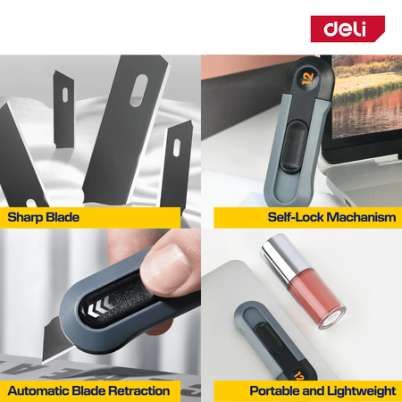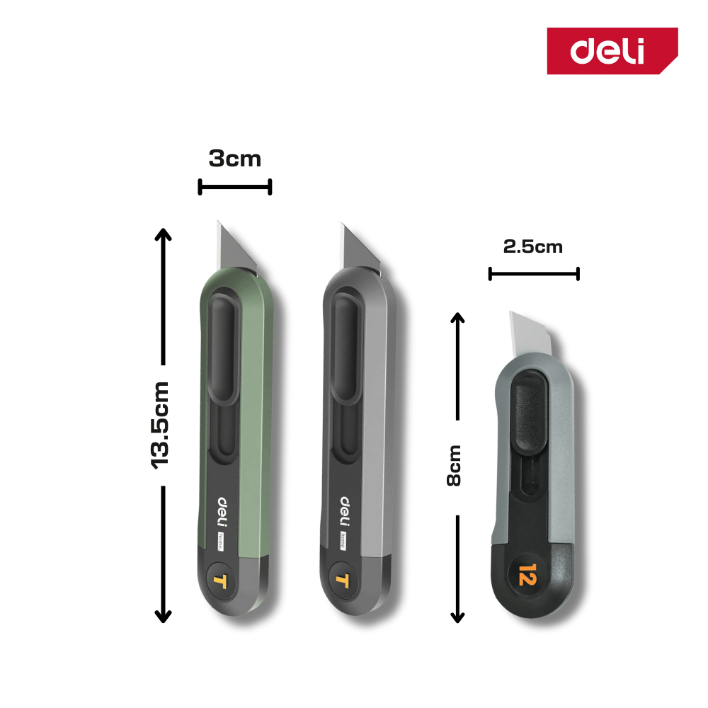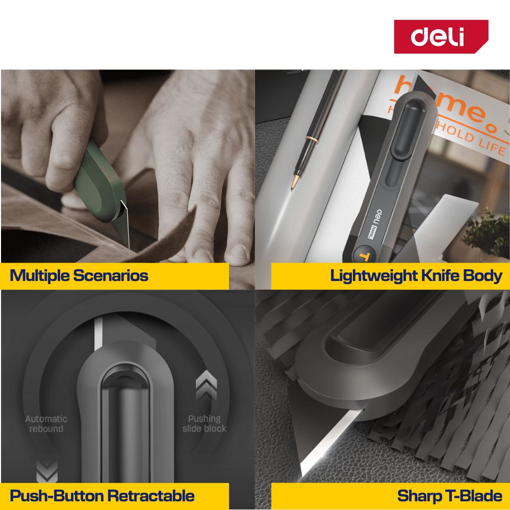 This Deli utility cutter knife series is designed for precise cutting tasks in offices, homes, and workshops.