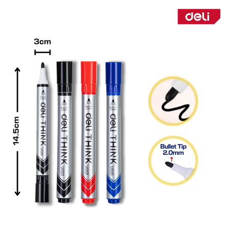 🌿 Deli Whiteboard Marker 2mm Bullet Tip (Smooth Writing, Easy Erase)