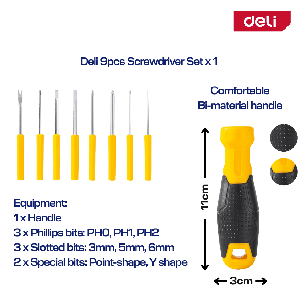 → Deli 9pcs Screwdriver Set x1